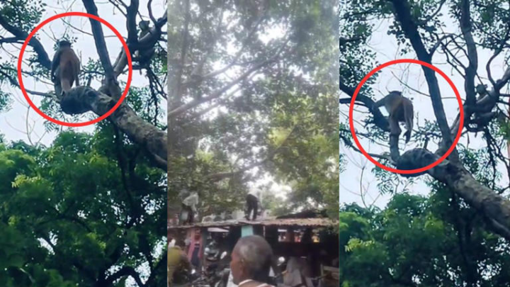 印度猴子抢走8万卢比钱袋, 爬上树大撒钞票引发民众哄抢